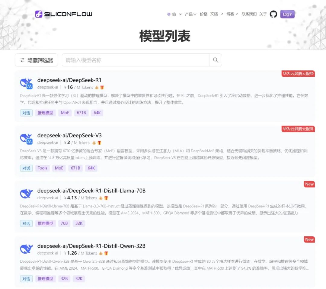 ▲硅基流动联合华为云上线的DeepSeek-R1/V3推理服务