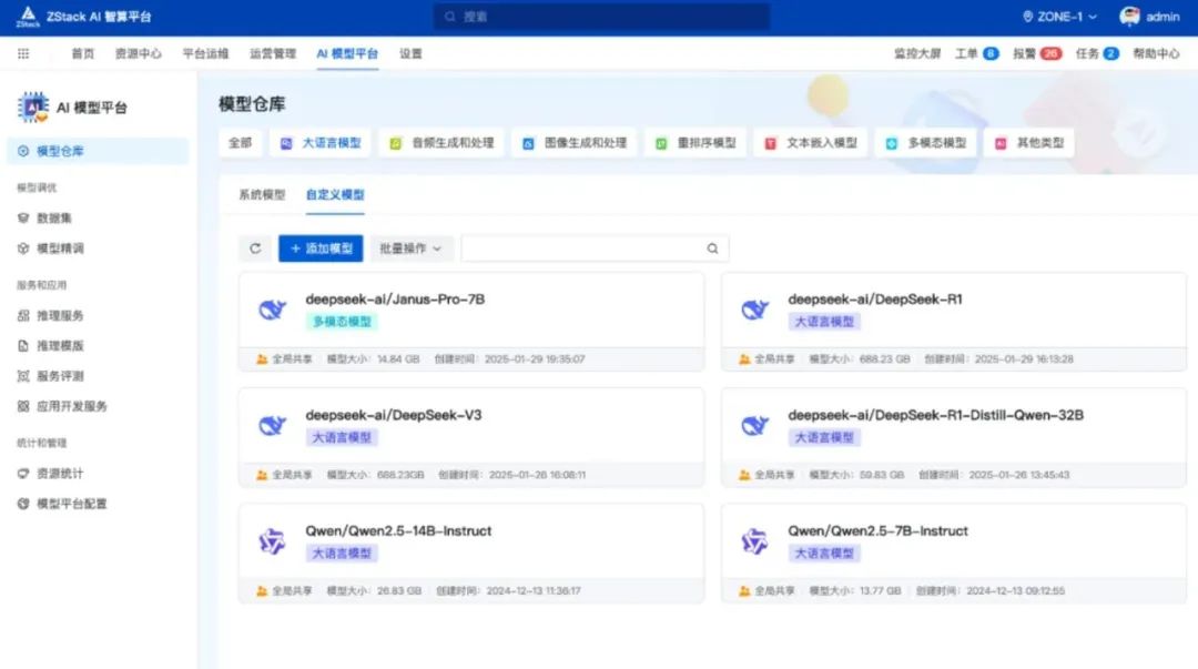云轴科技ZStack宣布AI Infra平台ZStack智塔支持企业私有化部署 DeepSeek V3/R1/Janus Pro三种模型,可基于海光、昇腾、英伟达、英特尔等国内外CPU/GPU适配。
